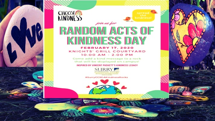 EVERYONE is welcome to participate in Random Acts Kindness Day at Knights’ Grill Courtyard (Surry Community College) on Monday, February 17th, from 10a – 2p.
